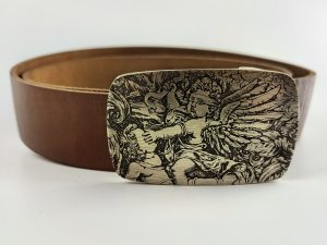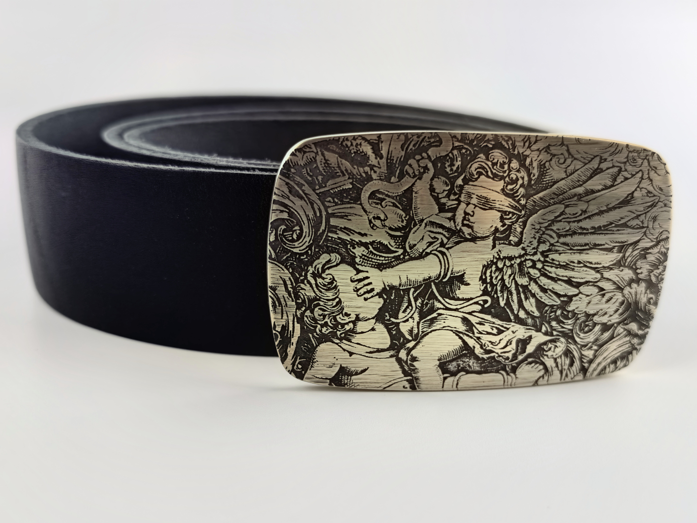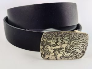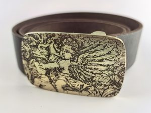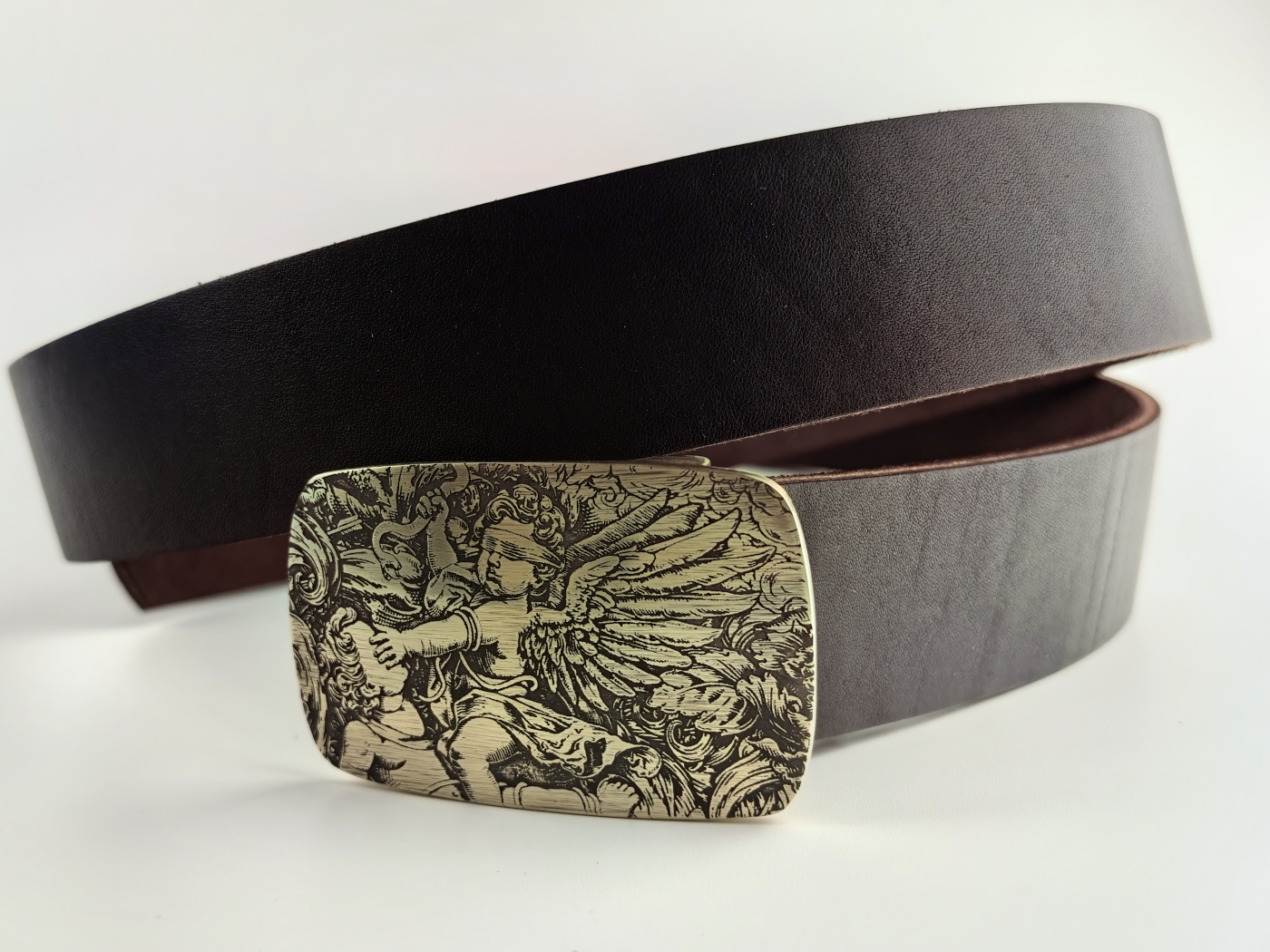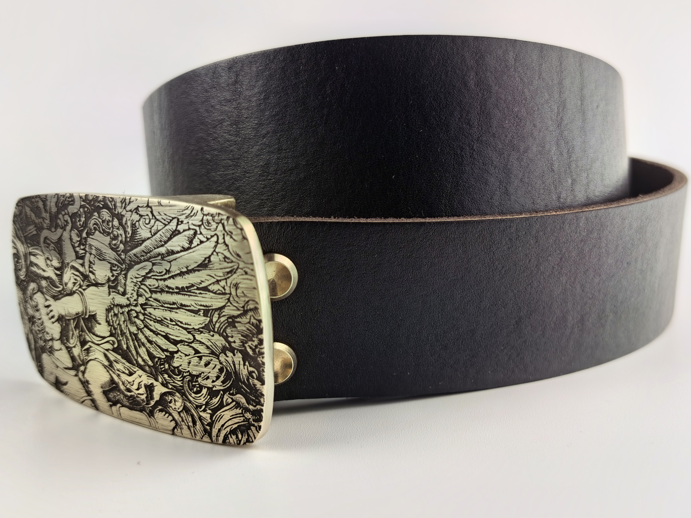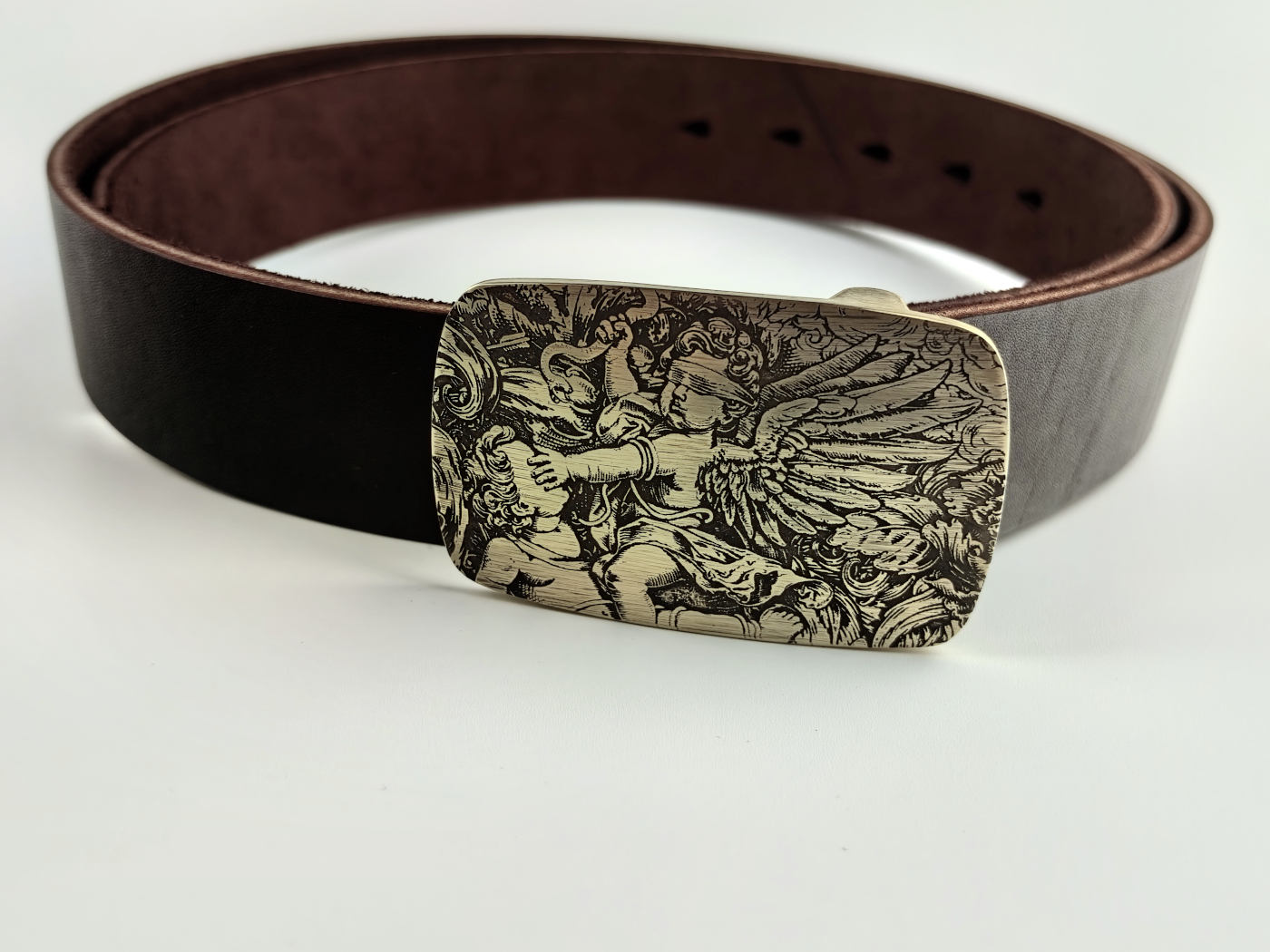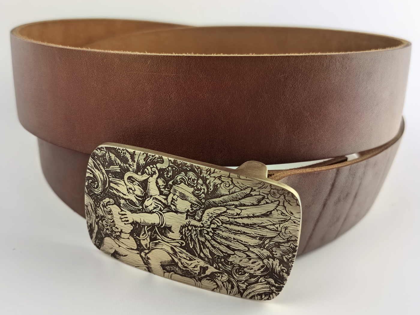 • Літая спражка і ніты з латуні (выдатная якасць). Памеры спражкі звонку: 79*49 мм. Пры выкарыстанні прыгожа старэе, пакрываючыся пацінай, і блішчыць у месцах трэння.