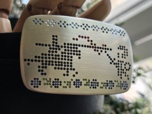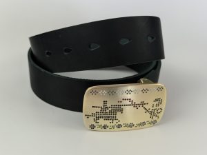 • Літая спражка з латуні (выдатная якасць). Памеры спражкі звонку: 78*50 мм. Пры выкарыстанні прыгожа старэе, пакрываючыся пацінай, і блішчыць у месцах трэння.