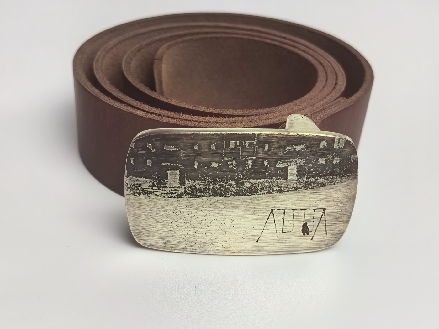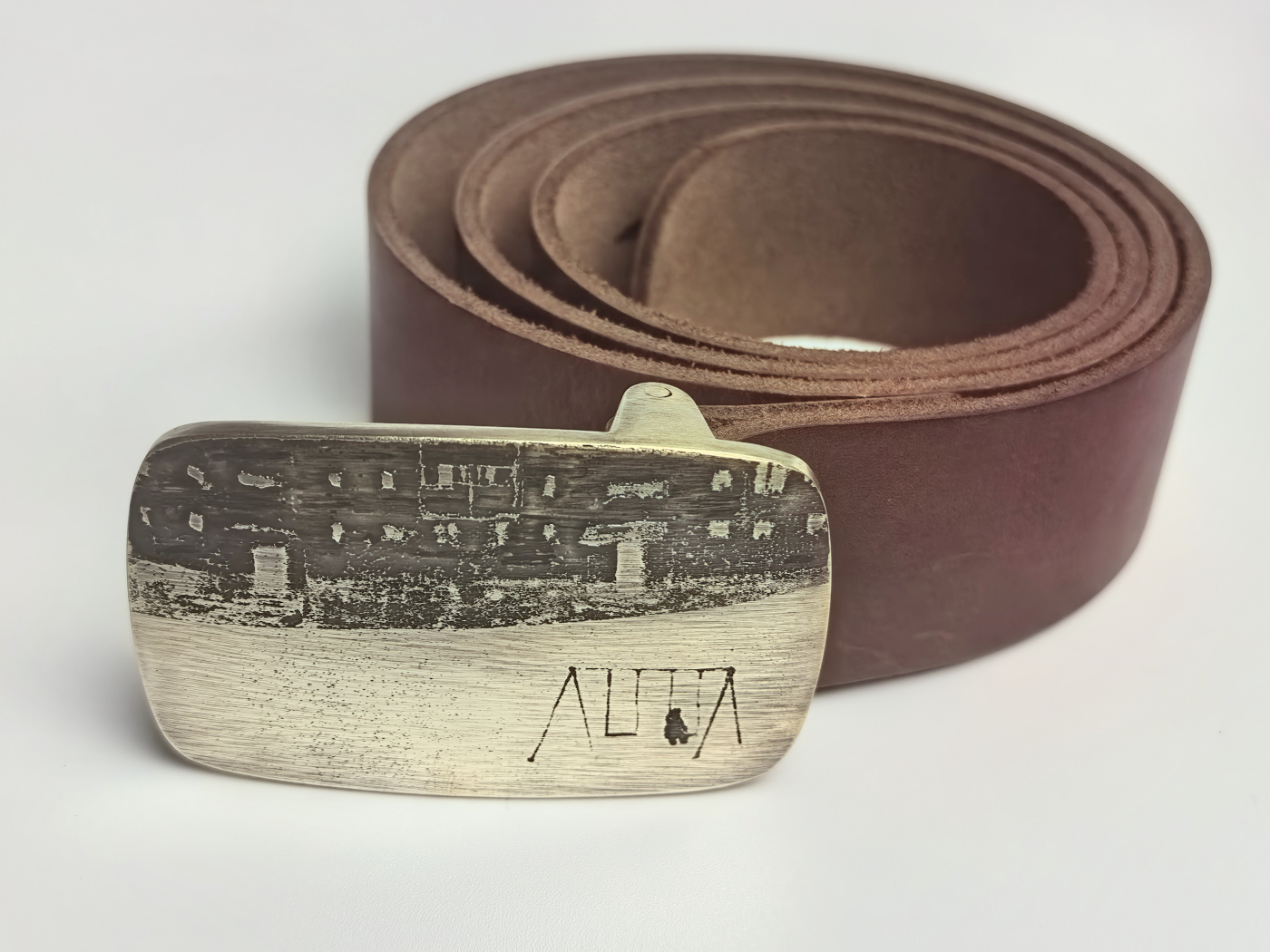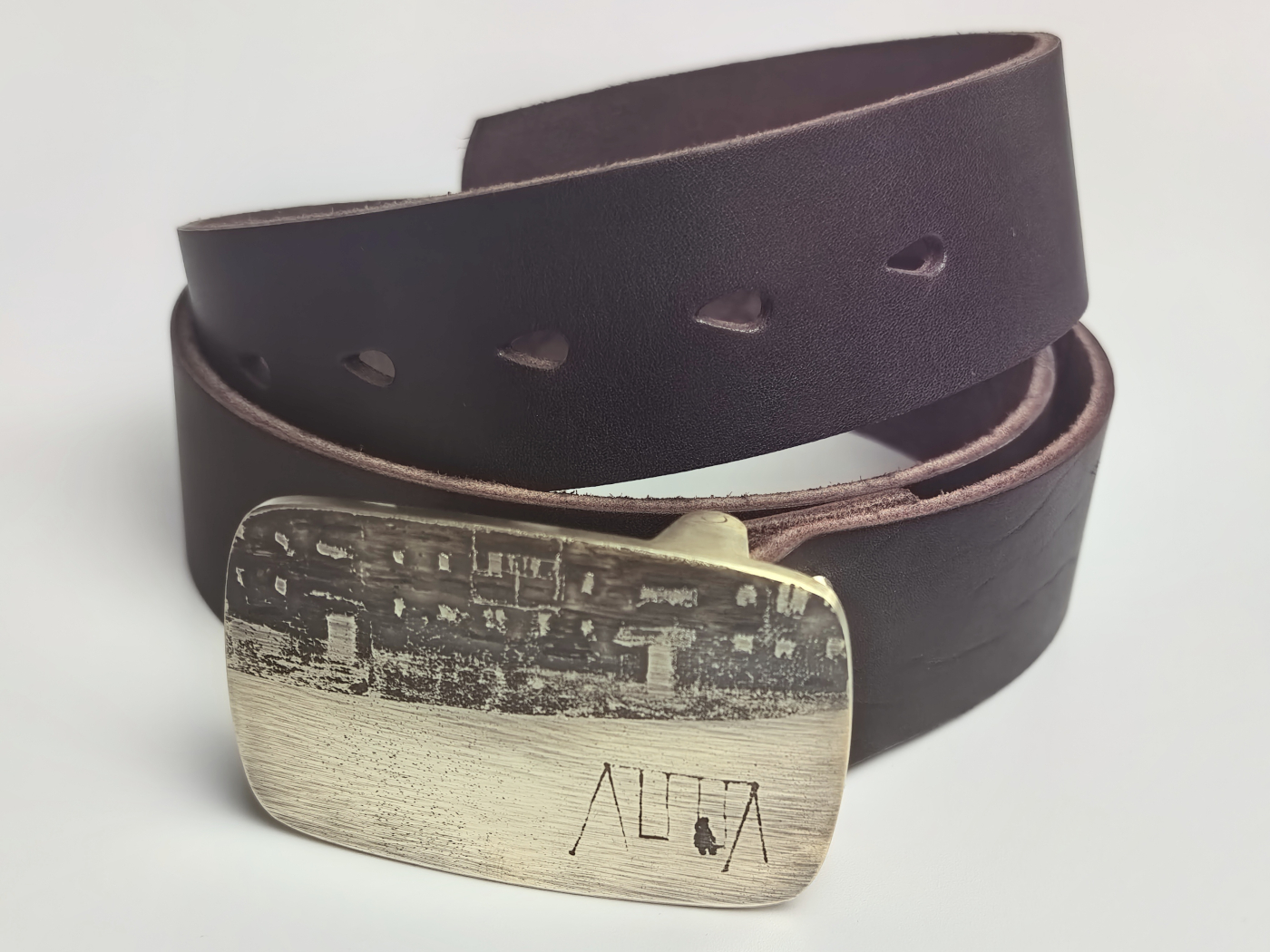 Рэмень ручнога вырабу з трывалай натуральнай скуры. Шырыня 39мм.