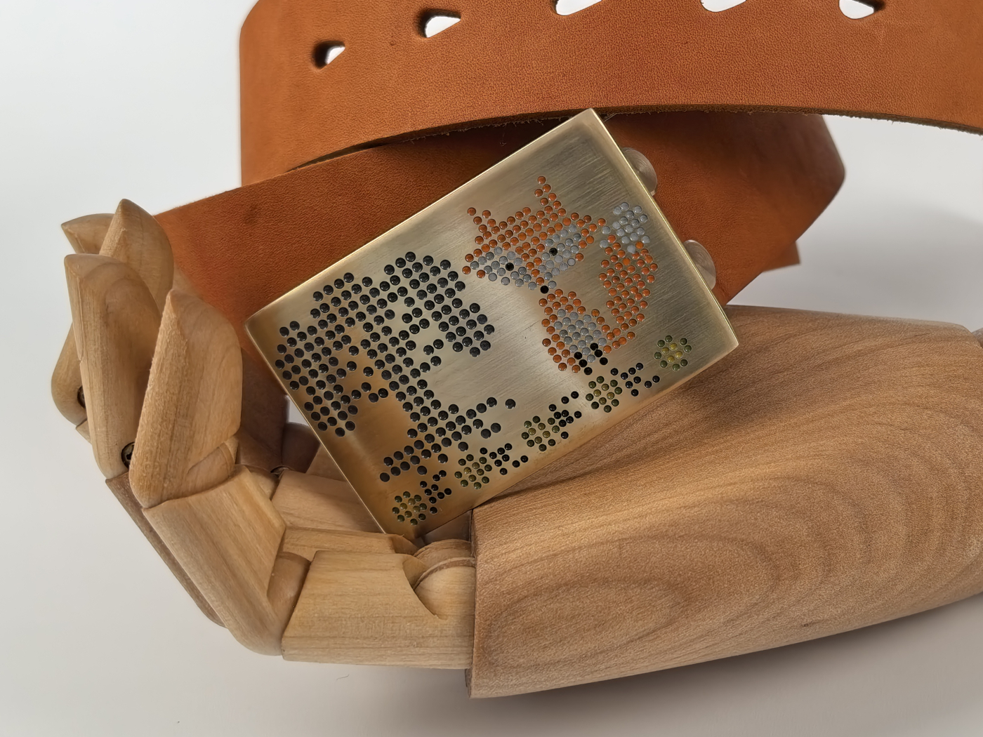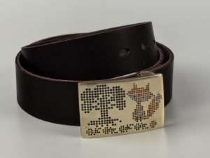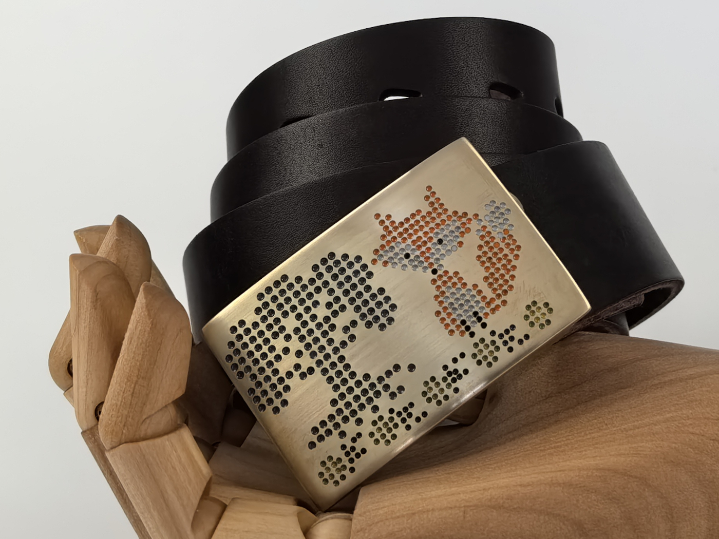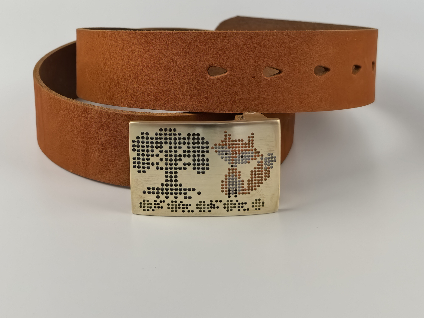 Рэмень ручнога вырабу з трывалай натуральнай скуры. Шырыня 39мм. Спражка з літой латуні і гарачай эмаллю.