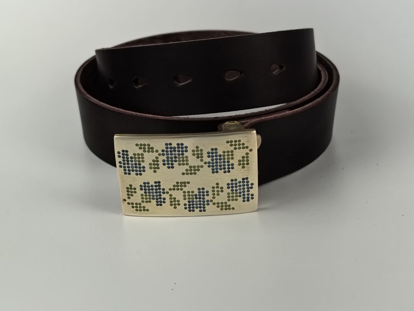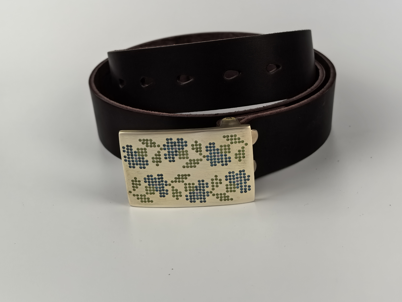 • Літая спражка з латуні (выдатная якасць). Памеры спражкі звонку: 70*46 мм. Пры выкарыстанні прыгожа старэе, пакрываючыся пацінай, і блішчыць у месцах трэння.