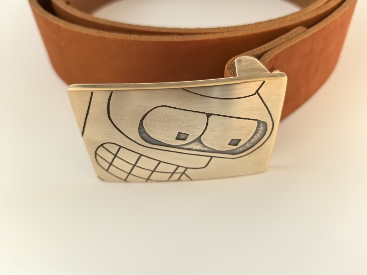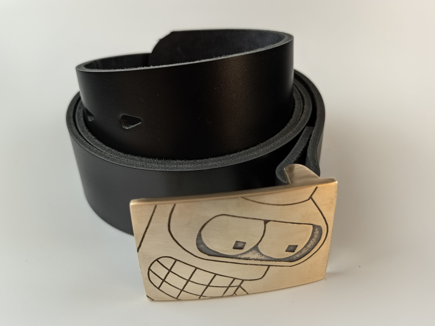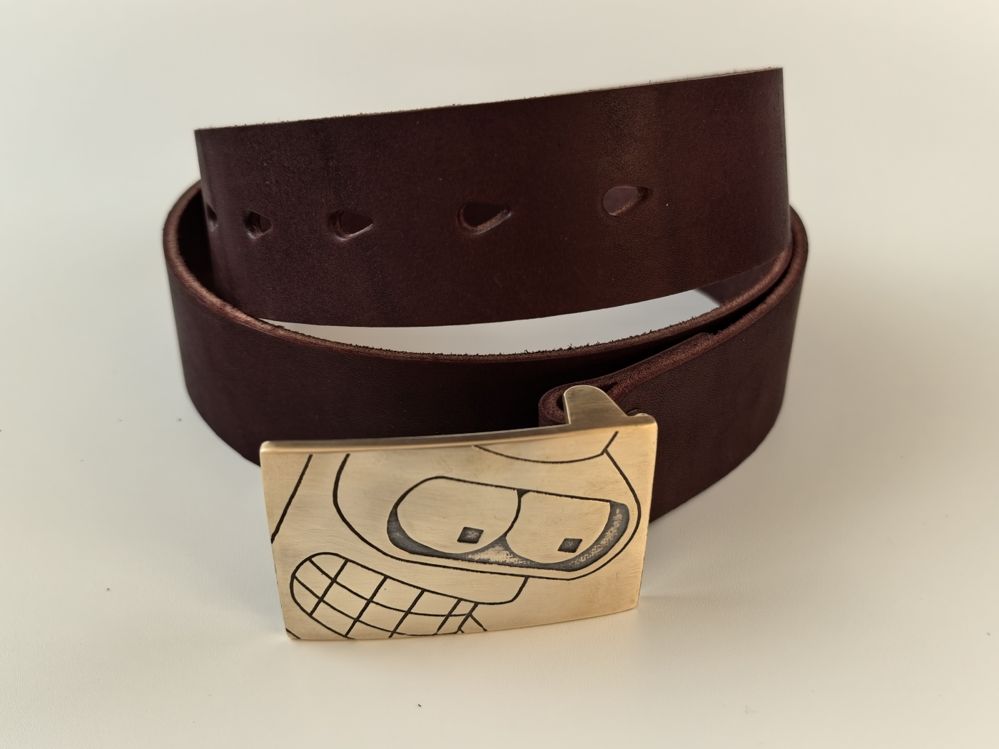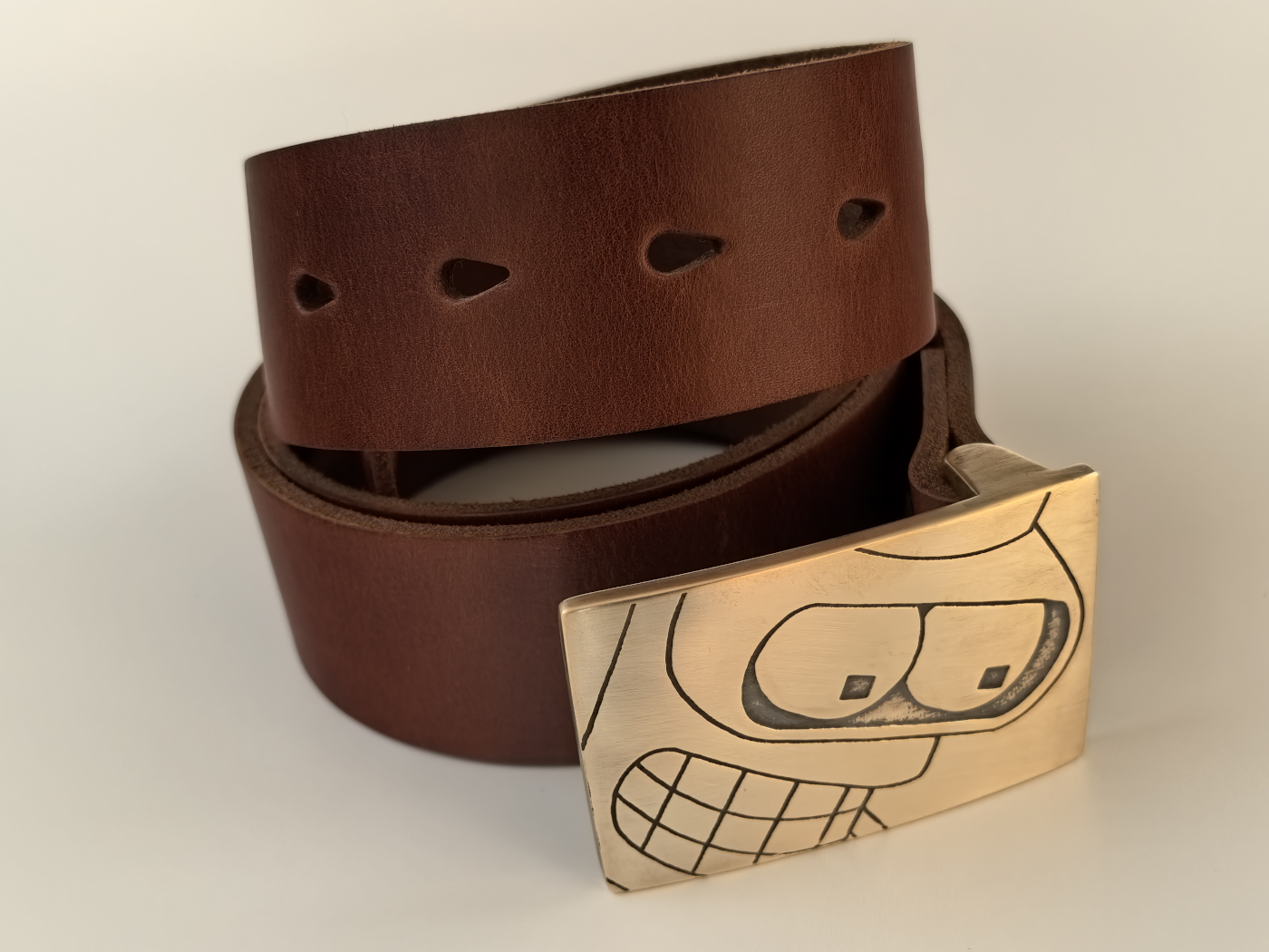Рэмень ручнога вырабу з трывалай натуральнай скуры. Шырыня 39мм. Ніты і спражка з літой латуні глыбокай гравіроўкі.