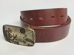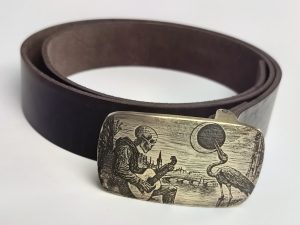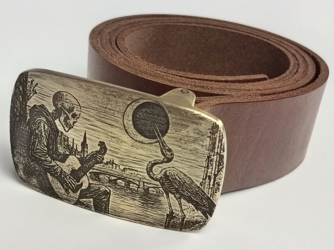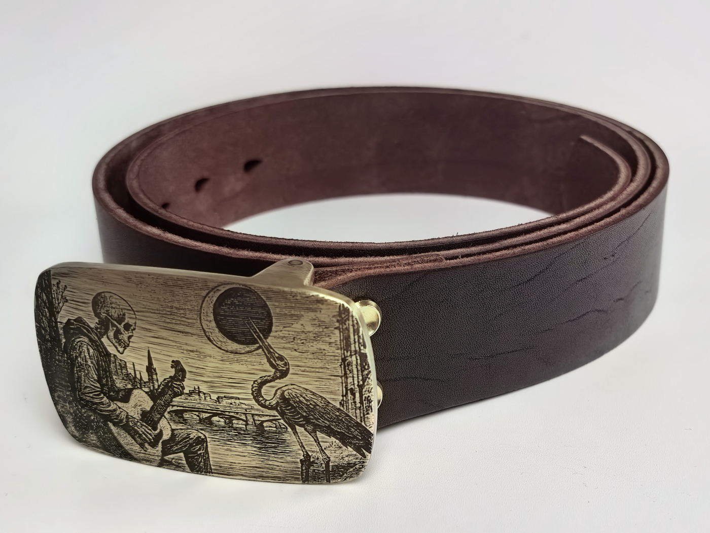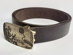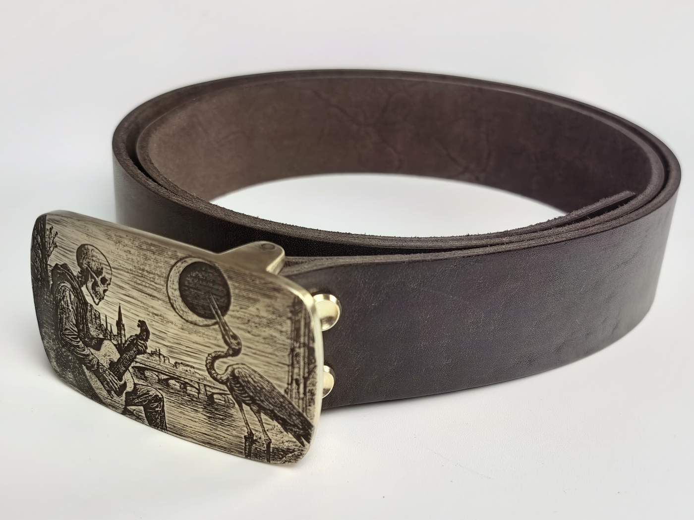 • Літая спражка і ніты з латуні (выдатная якасць). Памеры спражкі звонку: 78*50 мм. Пры выкарыстанні прыгожа старэе, пакрываючыся пацінай, і блішчыць у месцах трэння.