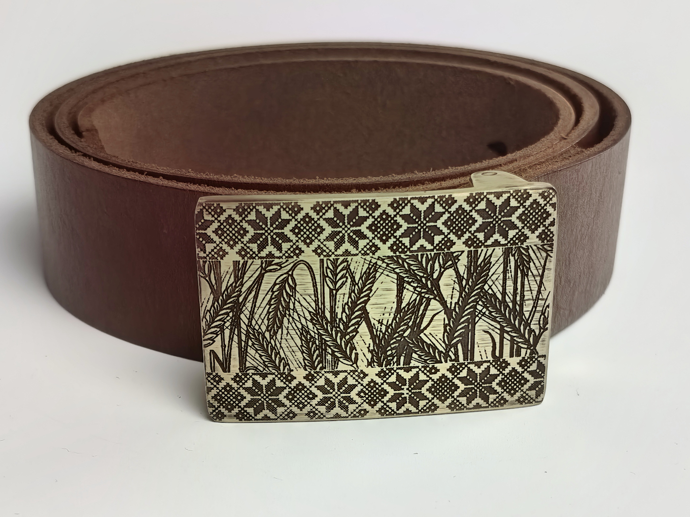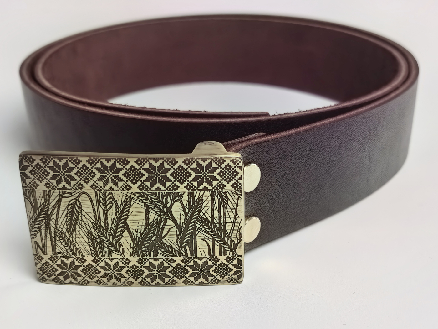 • Літая спражка з выявай жыта і ніты з латуні (выдатная якасць). Памеры спражкі звонку: 70*46 мм.